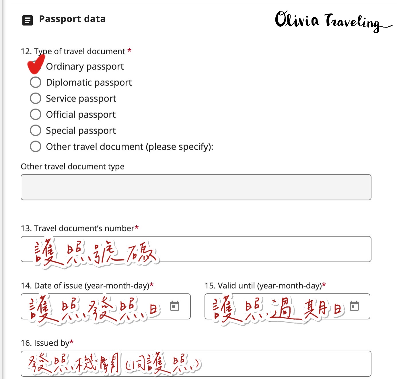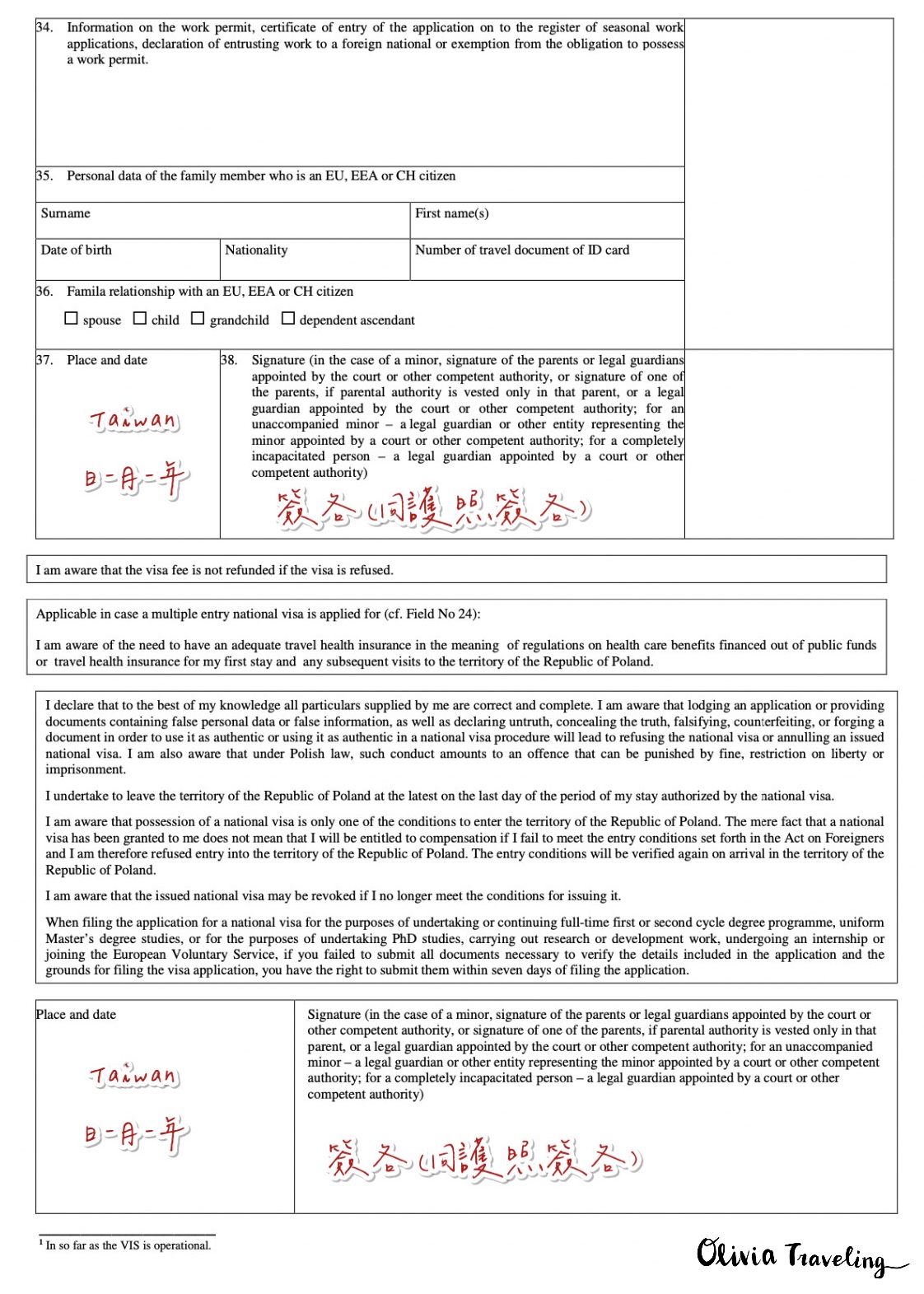 波蘭簽證申請表填寫